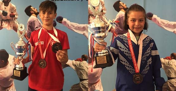 Hendek Karate Kulübü sporcuları Elanur Kaya, Berra Duman, Beyza Duman, Emirhan Hane, İlker Eren Özel ve Mehmet Efe