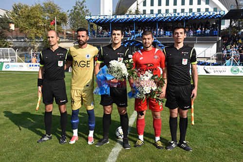 Başlama vuruşu öncesinde Hendekspor Takım Kaptanı Hakan Soylu karşılaşma Hakemleri ve Devrek Belediyespor’a çiçek takdiminde bulundu.