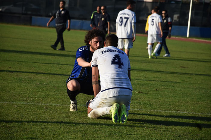 Karşılıklı ataklar ile devam eden karşılaşmanın 38. dakikasında atak geliştiren Karamürselspor 38. dakikasında Hasan kendisinin ve takımının ikinci golünü kaydederken ilk yarı Karamürselspor’un 2-0 üstünlüğü ile sona erdi.