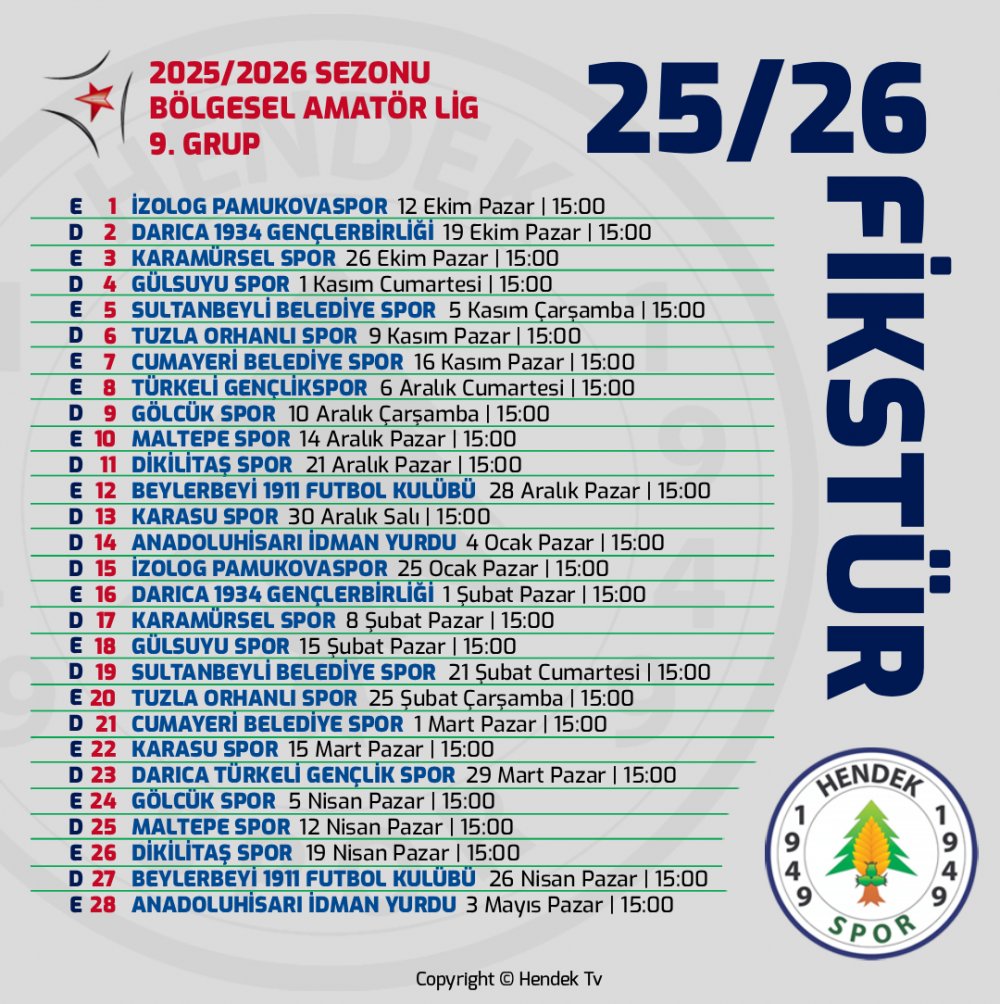 2024/2025 sezonu Bölgesel Amatör Lig 9. Grupta yer alan temsilcimiz Hendekspor sezona kendi sahasında bir diğer Sakarya temsilcisi olan İzlog Pamukovaspor karşılaşması ile başlayacak.