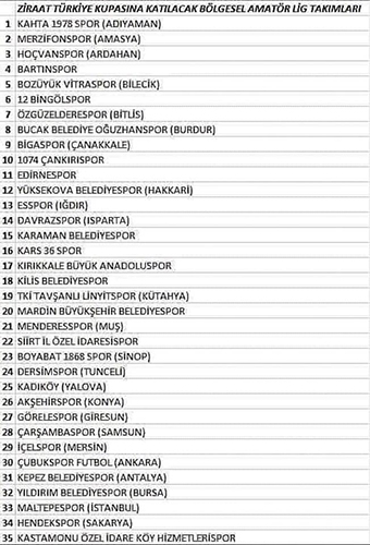 - 2019 – 2020 Sezonunda Profesyonel takımı olmayan illerden Bölgesel Amatör Lig’de