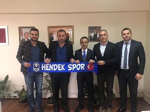 Bölgesel Amatör Ligi temsilcimiz Hendekspor Kulübü Başkanı Sadettin Meraklı ve Yönetim Kurulu üyeleri SATSO Başkanı Akgün Altuğ, İlçe Emniyet Müdürü Şevket İlhan, İl Spor Müdürü Fatih Çelikel, ASKF Başkanı Yaşar Zımba, Muhtarlar Derneği Başkanı Emin Kula, Nüfus Müdürü Turgay Azın, Vergi Dairesi Müdürü Necmettin Aydın, Tapu Müdürü Mustafa Esen ve MHP Meclis Üyesi Hüdaverdi Bahadır’ı makamında ziyaret ettiler.