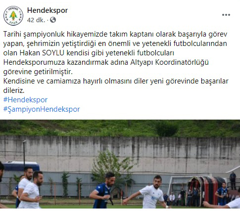 Hendekspor Sosyal Medyadan yaptığı açıklamada, Tarihi şampiyonluk hikayemizde takım kaptanı olarak başarıyla görev yapan, şehrimizin yetiştirdiği en önemli ve yetenekli futbolcularından olan Hakan SOYLU kendisi gibi yetenekli futbolcuları Hendeksporumuza kazandırmak adına Altyapı Koordinatörlüğü görevine getirilmiştir.