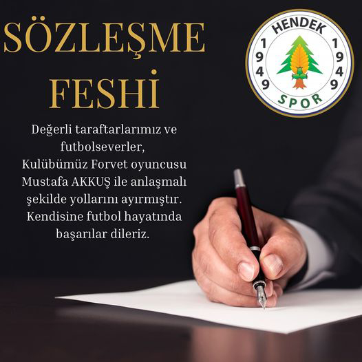 Hendekspordan yapılan açıklamada ,Kulübümüz forvet oyuncusu Mustafa Akkuş ile anlaşmalı şekilde yollarını ayırmıştır.