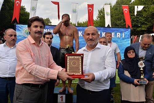 Türkiye Güreş Federasyonu Ata sporumuza destek veren 25. Dönem Milletvekili Ali İnci’ye ve Hendek Belediye Başkanı İrfan Püsküllü’ye plaket takdim etti.