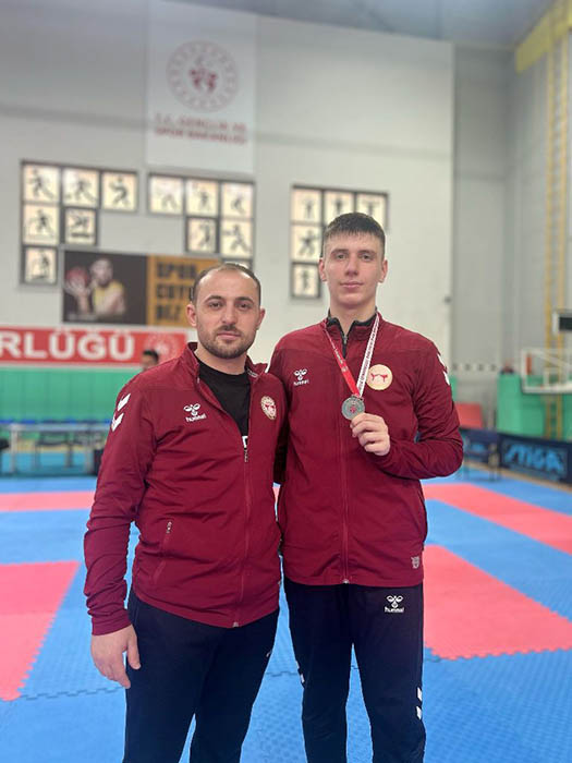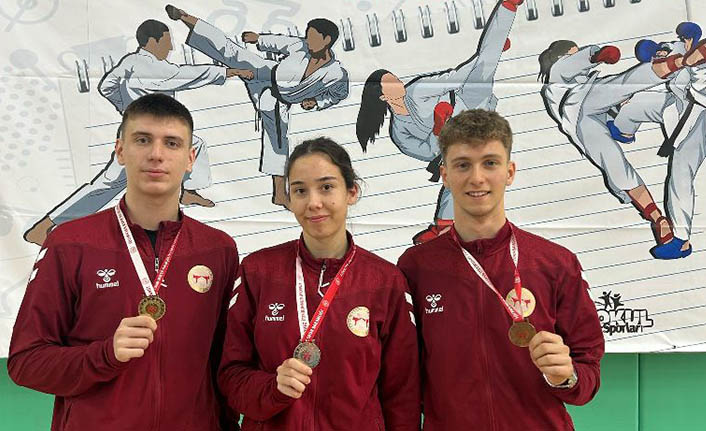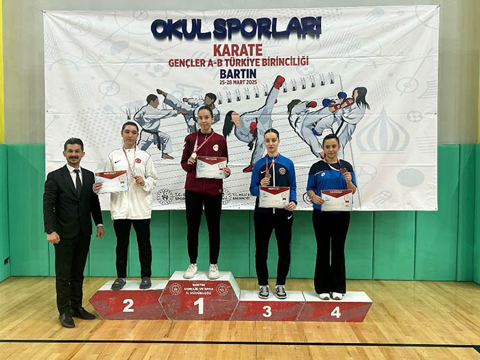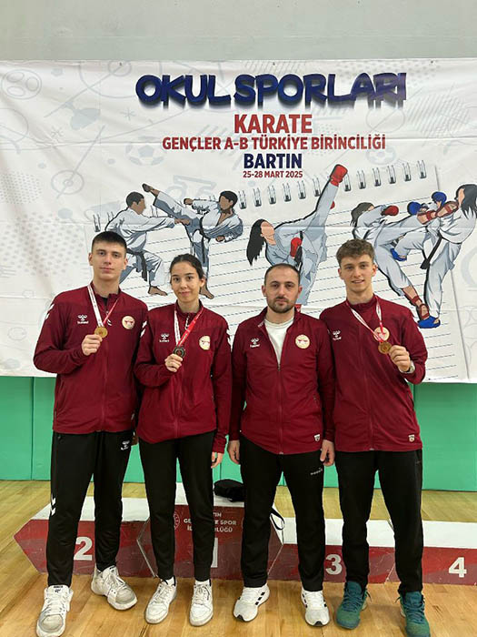Hendek Karate Spor Kulübü antrenörleri Ümit Atış ve Volkan Karagöz, kürsüye çıkarak madalya kazanan sporcularını kutlayarak başarılarının devamını diledi.