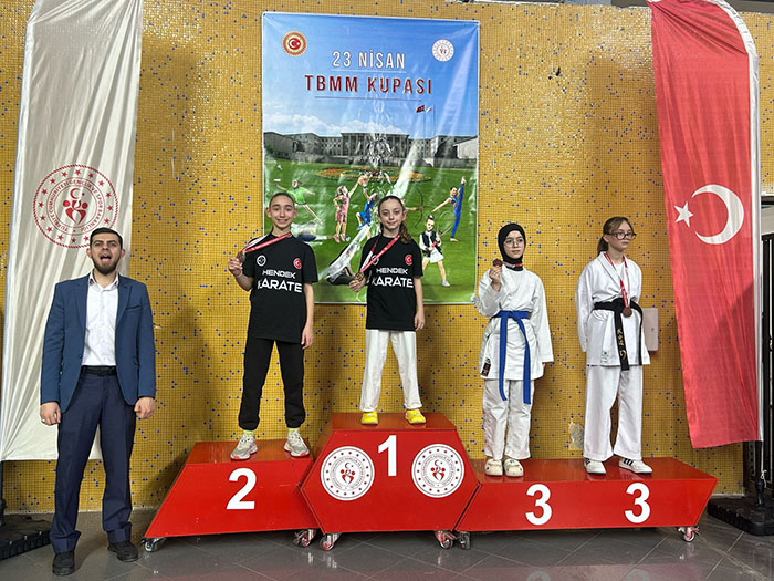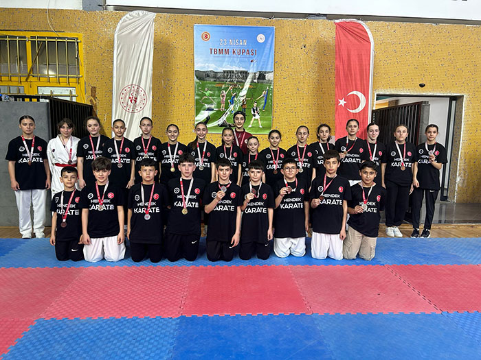İlimizin ev sahipliğinde Atatürk Spor Salonu’nda düzenlenen 23 Nisan TBMM Karate Turnuvasında Hendek Karate Spor Kulübü fırtınası esti. Müsabakaları 13 altın, 18 gümüş ve 15 bronz olmak üzere toplam 46 madalyayla tamamlayan Hendekli karateciler madalyalara ambargo koydu.