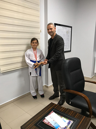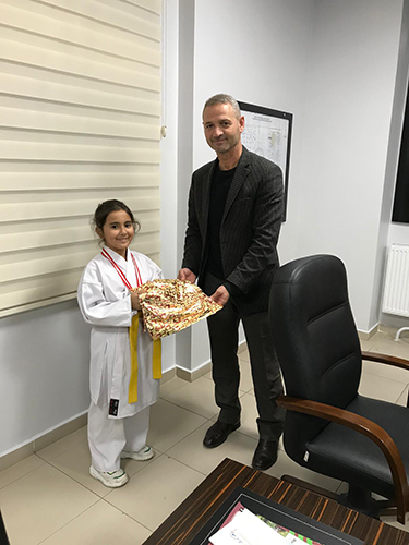 Hendek Gençlik ve Spor İlçe Müdürü Süleyman Akıcı başarılarından dolayı dereye giren sporcuları ve karate antrenörü Bahar Yetimoğlu’ nu, tebrik ederek ödül takdim etti.