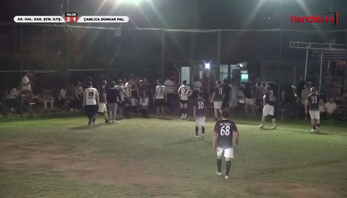 Karşılıklı ataklarla başlayan ikinci yarının 42. dakikasında Arena Halı Saha Şenol İletişim’in 2. golü sonrası saha bir anda karışırken, tartışmaların büyümesi ve oyuncuların karşılaşma hakeminin üzerine yürümesi sonucu hakem sahayı terk etti.