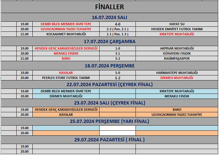 Geleneksel 18.Hendek Kaymakamlık kupası turnuvası çeyrek final karşılaşmalarının programı;