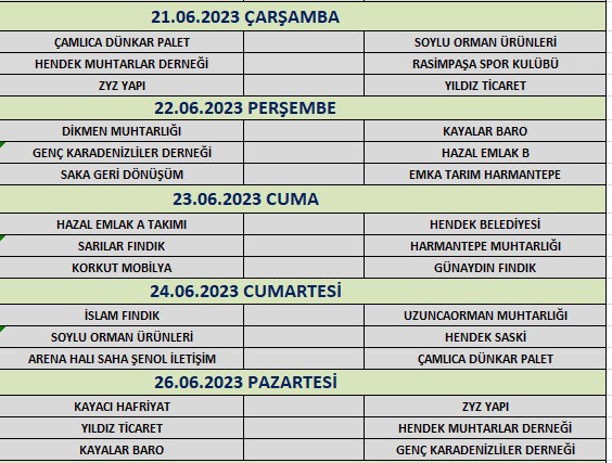Hava Şartlarından Dolayı 2.gün ara verilen Kaymakamlık kupa Maçları Çarşamba akşamı yeniden başlayacak işte program;