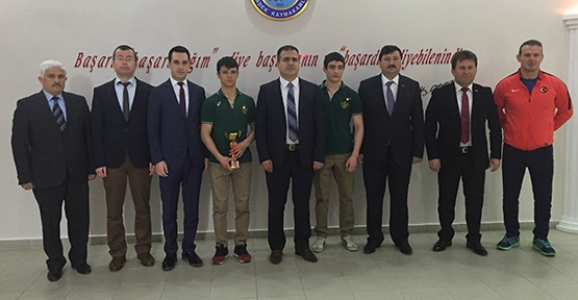 Hendek İlçe Milli Eğitim Müdürü Sabri Doğan, Şube Müdürü Öcal Danyeri, İlçe Spor Müdürü Feyzullah Köstereli, Okul Müdürü Umur Çeşme, Antrenör Zafer Başar ve Şampiyon sporcular Kaymakam İdris Akbıyık’ı makamında ziyaret etti.
