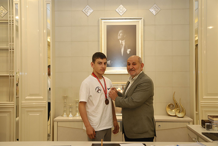 Spora verdiği önem doğrultusunda Hendek’teki tüm spor branşlarına desteklerinin tam olduğunu ifade eden Başkan İrfan Püsküllü, U15 Erkekler Grekoromen Güreş Türkiye Şampiyonasında elde ettikleri başarılar nedeniyle sporcularını tebrik ederek şampiyonlara teker teker hediye takdim etti.