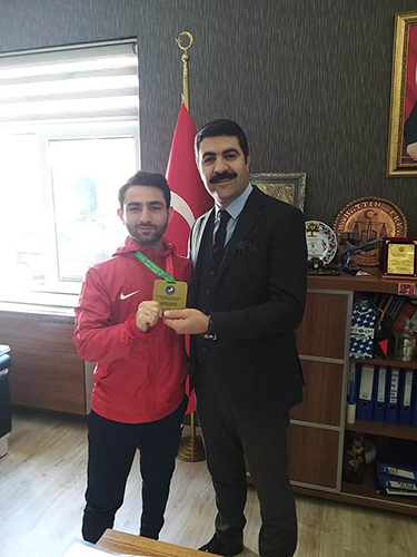 Macaristan’da düzenlenen 47. Ümit, Genç ve 21 Yaş Altı Avrupa Şampiyonasında, Avrupa Karate Şampiyonu olan Hendek Karate Kulübü sporcusu Ömer Faruk Ateş ve Hendek Belediyesi ve Milli Takım Antrenörü Karate Antrenörü Nurkan Kayacık ile birlikte, Hendek Cumhuriyet Başsavcısı Sebahattin Erkaya’yı makamında ziyaret etti.
