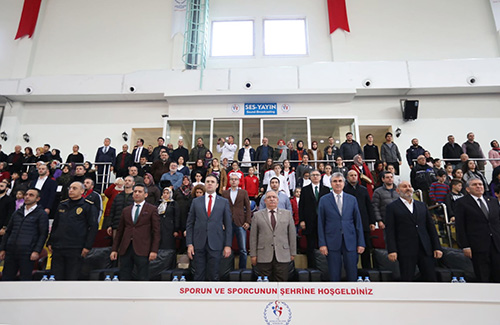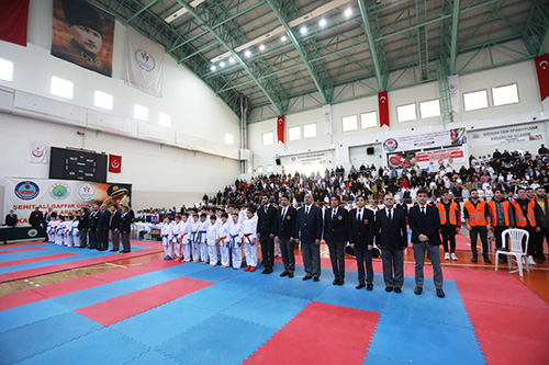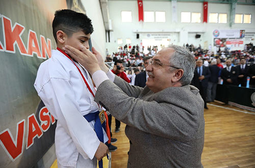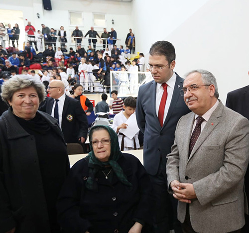 Şehit Emniyet Müdürümüzün ablası Sebahat Arslan ve protokol üyeleri ile birlikte turnuvada dereceye girenlere madalyalarını takarak onlarla yakından ilgilenen Vali Ahmet Hamdi Nayir, turnuvaya katılan tümsporculara başarılar dileyerek hatıra fotoğrafı da çektirdi.