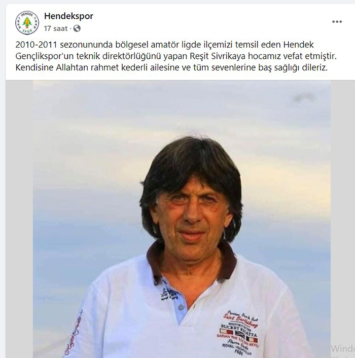 Hendekspor’un sosyal medya sayfasından yaptığı paylaşımda “2010-2011 sezonunda bölgesel amatör ligde ilçemizi temsil eden Hendek Gençlikspor'un teknik direktörlüğünü yapan Reşit Sivrikaya hocamız vefat etmiştir. Kendisine Allahtan rahmet kederli ailesine ve tüm sevenlerine baş sağlığı dileriz” ifadeleri yer aldı.