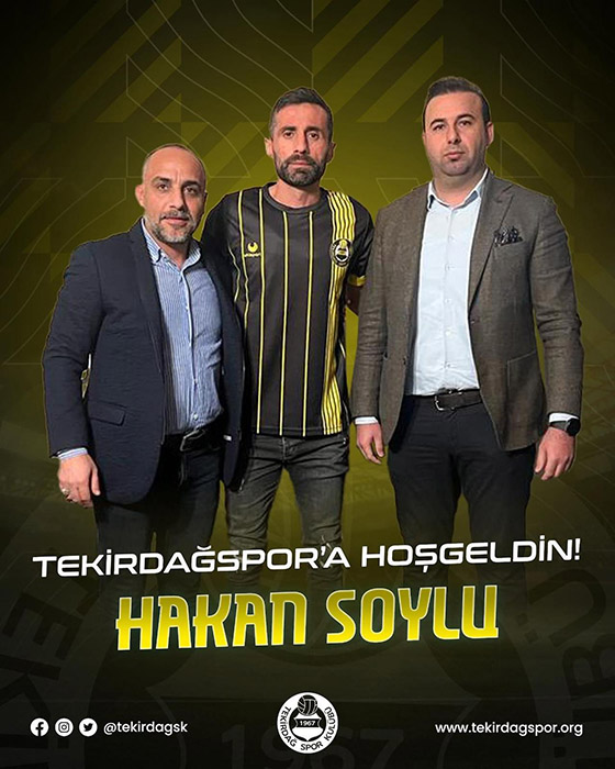 Tekirdağspor’un sosyal medya sayfasından Soylu’nun transferi ile ilgili yapılan paylaşımda “Uzun yıllar üst liglerde forma giymiş tecrübeli oyuncu Hakan Soylu Tekirdağspor’umuzda. Tekirdağspor’a Hoşgeldin Hakan Soylu!” ifadelerine yer verilirken, transfer sonrasında verilen fotoğrafta Tekirdağspor forması giyen Hakan Soylu’nun yanında Tekirdağspor Başkanı Ekrem Daşdan ve Hendekspor Başkanı Murat Kaya’da yer aldı.