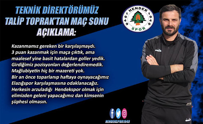 Hendekspor Teknik Direktörü Talip Toprak Maç sonu Hendekspor sosyal medyasından açıklama yaptı.