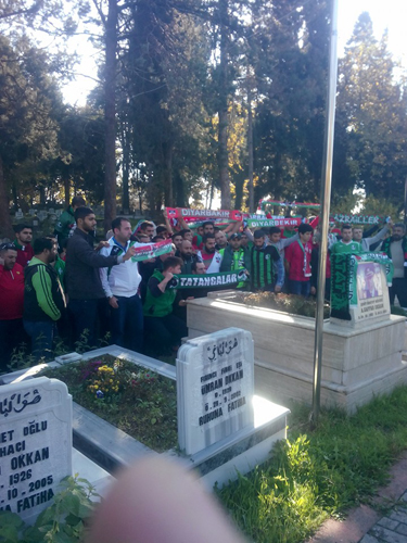 Karşılamanın ardından Hendek Bayraktepe’de Azrailler taraftar grubuna kahvaltı veren yeşil siyahlı taraftar daha sonra hep birlikte Gaffar Okan’ın mezarına ziyarette bulundular. Gaffar Okan’ı mezarı başında rahmetle anan taraftarlar mezar taşına Sakaryaspor ve Diyarbakırspor atkısı taktılar.