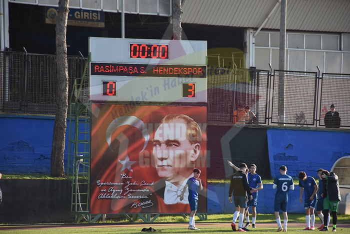 28.Dakikada U-18 Hendekspor atak yaptı U-18 Rasimpaşaspor kalecisi öne çıkınca Y.Anıl vuruşu filelerle buluştu U-18 Hendekspor 1-0 öne geçti.