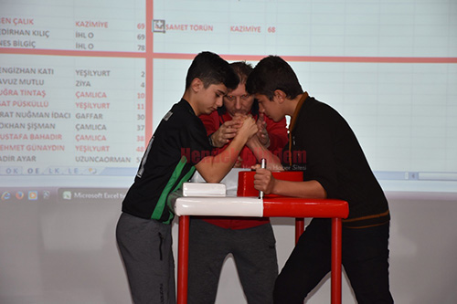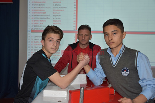 Lise-Ortaokul, Erkek ve kız kategorilerinde gerçekleştirilen ve 16 okul 102 sporcunun katıldığı, bilek güreşi müsabakaları final maçlarıyla tamamlandı.Final Müsabakalarının sonunda dereceye giren öğrenciler;