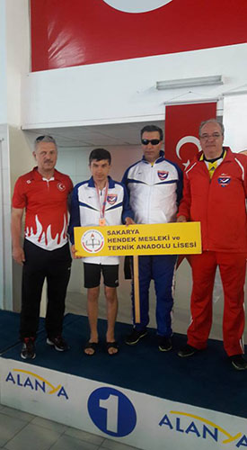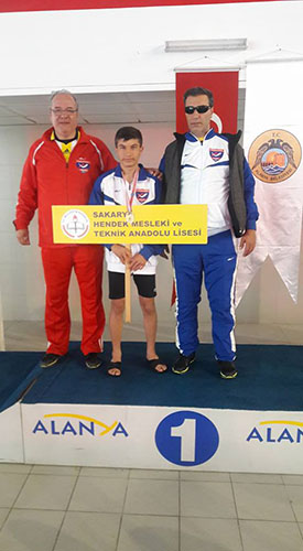 Antalya Alanya’daki yarışlarda Hendek Mesleki Teknik Anadolu Lisesi Görme engelli öğrencisi Muhammed Sefa Durdurmuş 200 metre serbest okullar arası yüzme dalında Türkiye birinciliğini kazandı.