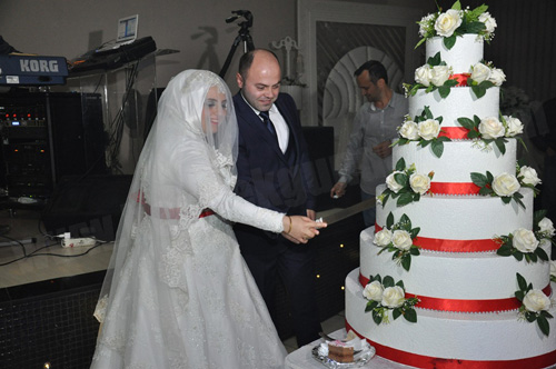 Hendek Belediye Sosyal tesislerinde düzenlenen nikah töreninin ardından Büşra ve Murat çifti pasta kestiler.
