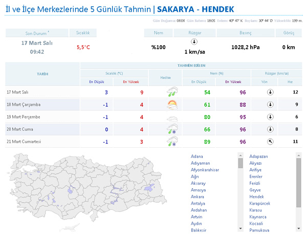 Meteoroloji Genel Müdürlüğü'nün ilçemiz için 5 günlük hava tahmin raporu;