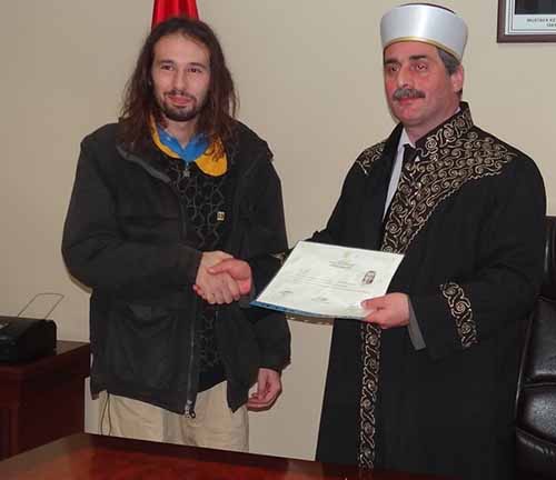 İlçe müftüsü Abdurrahman Şahin ; Müslüman olan Süleyman’a İngilizce Mealli bir adet Kur’an-ı Kerim hediye etti ve tanzim edilen 'ihtida belgesini' de kendisine takdim etmesiyle Tören sona erdi.