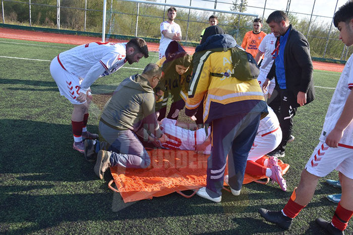 26.Dakikada hava topuna çıkan Kazimiye Futbolcusu Yunus Emre kolunun üstüne düşmesi sonucu sakatlandı.