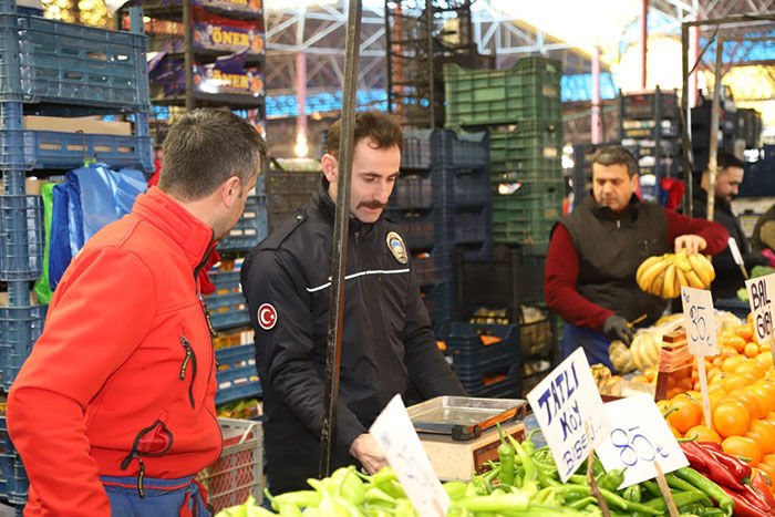 Vatandaşların güvenli ve huzurlu bir ortamda alışveriş yapabilmesi amacıyla yapılan kontrollerde, hem esnaf hem de pazar alanındaki genel düzen titizlikle incelendi.